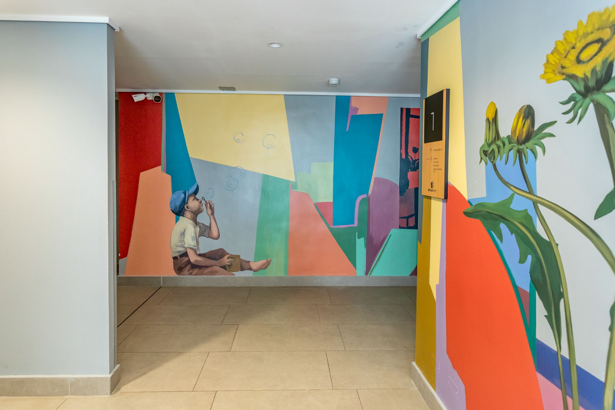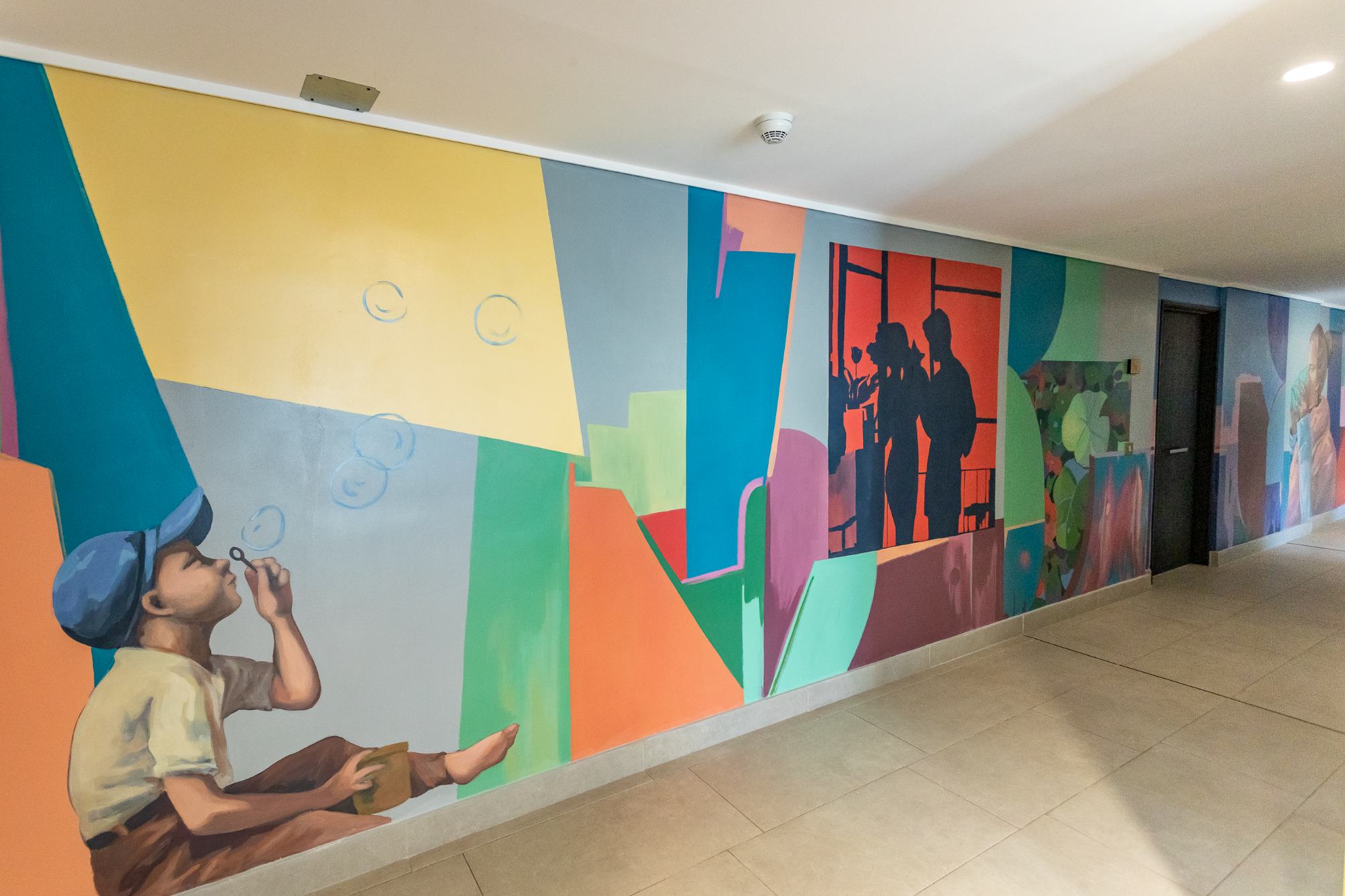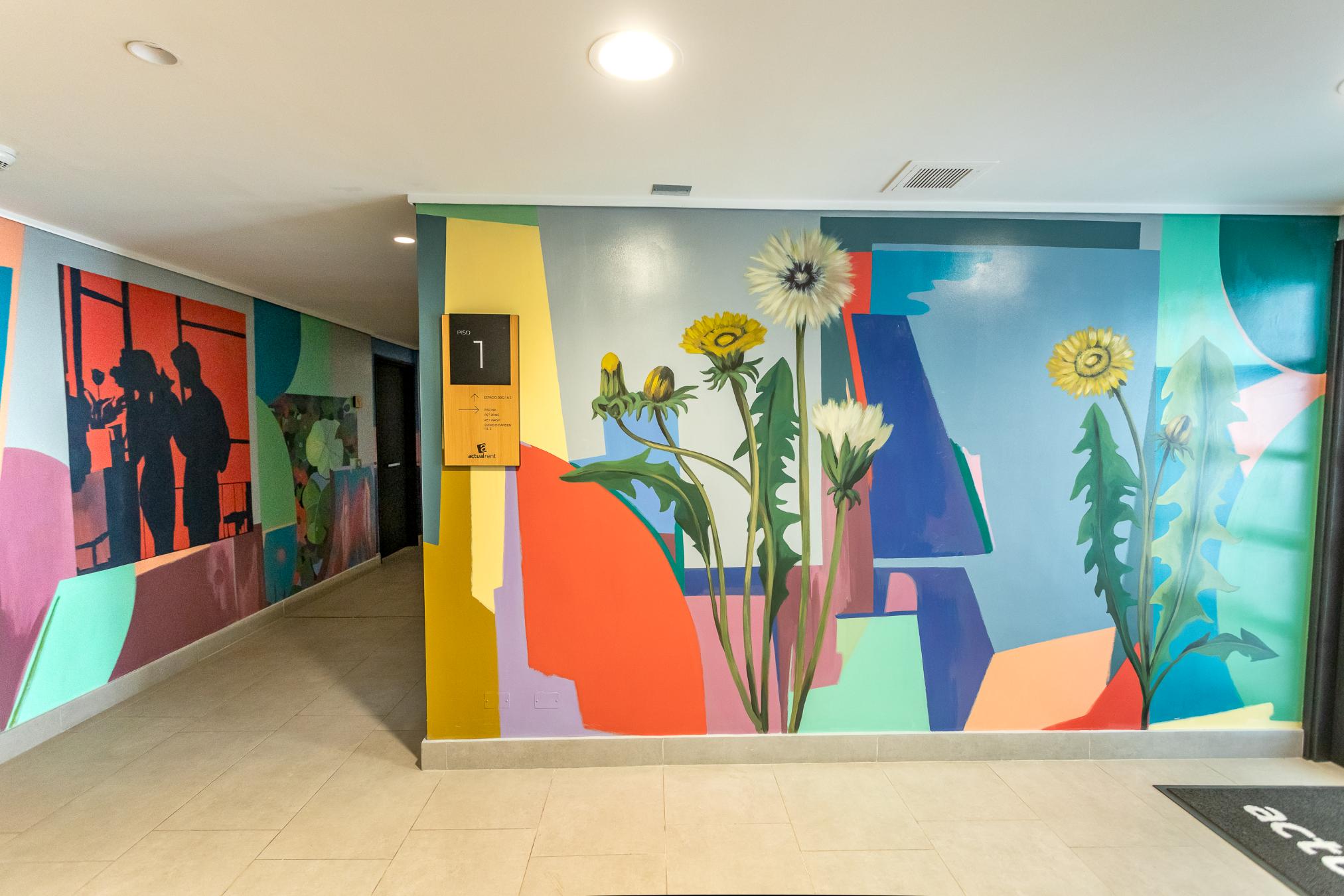 La propuesta se compone de dos muros de alto tráfico de personas que son complementarios entre sí. El primero aborda la idea de comunidad, simbolizada por la semilla de amapola, cuyas múltiples y pequeñas formas evocan lo colectivo, la diversidad y la fuerza de lo compartido. El segundo se centra en el porvenir, representado a través del tránsito de las estaciones del año y la presencia de personajes que encarnan distintos momentos vitales, recordando que el futuro se construye de manera gradual desde la vida cotidiana. En conjunto, el mural invita a proyectar un horizonte común, donde lo colectivo se presenta como la base para un crecimiento continuo.