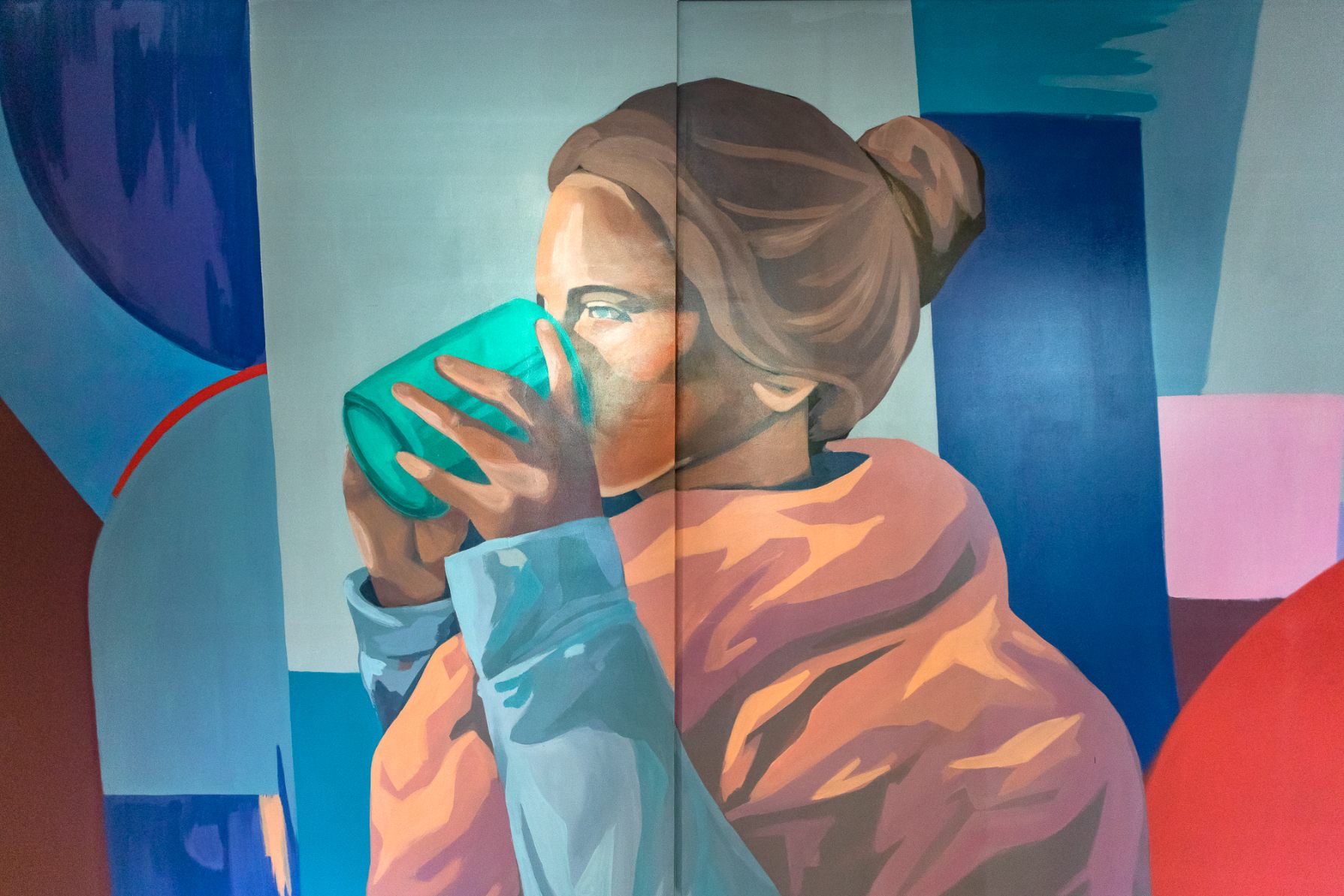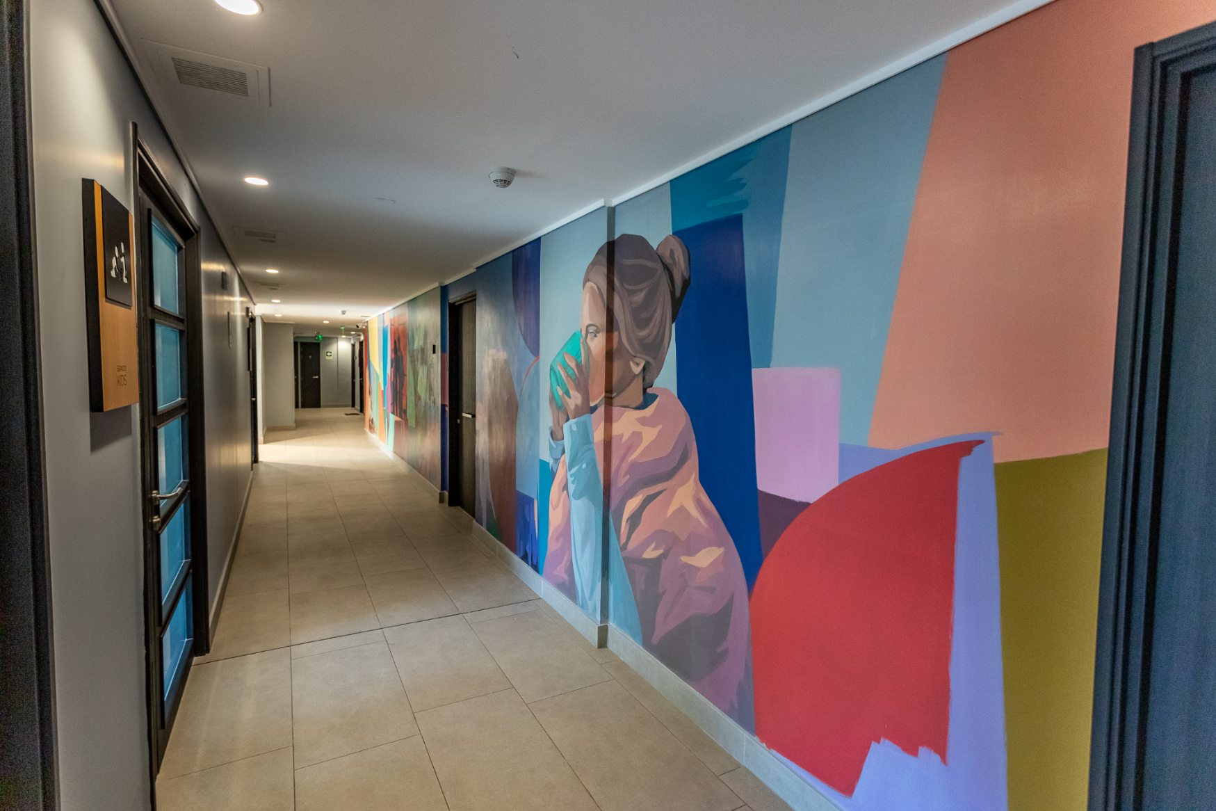 La obra se articula en torno a los conceptos de porvenir y comunidad, entendidos como procesos vivos y en constante transformación. A través de un lenguaje geométrico de colores vibrantes, el mural integra escenas y personajes cotidianos que dialogan con la arquitectura del edificio. Según la artista, las formas y planos de color —en gamas frías y cálidas— aluden a la diversidad y a los ciclos de la vida, generando una composición armónica que refuerza el sentido de pertenencia y la experiencia compartida del habitar.